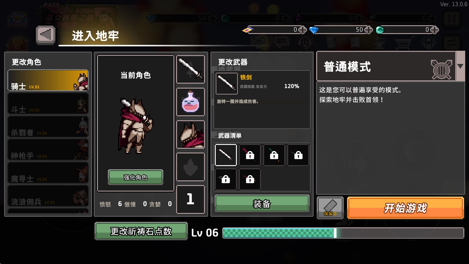 首先我们需要选择好角色,并配置装备后开始战斗。