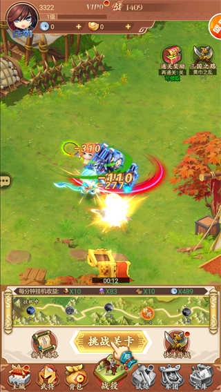 之后会自动进入战斗环节,放置类游戏确实很适合日常用来放松娱乐。战斗画面的特效相当炫酷,马超使出长枪猛击后,战斗便取得了胜利。