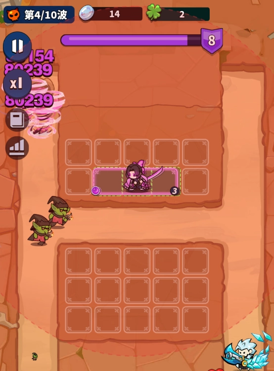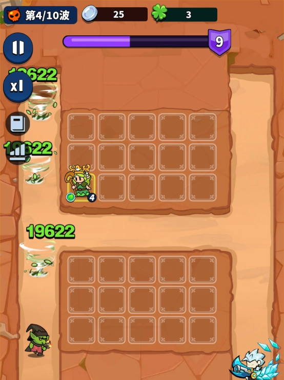 该英雄的攻击类型为单体伤害,并且强化攻击带有持续效果,在造成伤害后会在原地留下一个能持续造成伤害的旋风。因此,推荐将该英雄放置在离出怪口较近的位置,利用持续性的旋风来打出高额伤害。