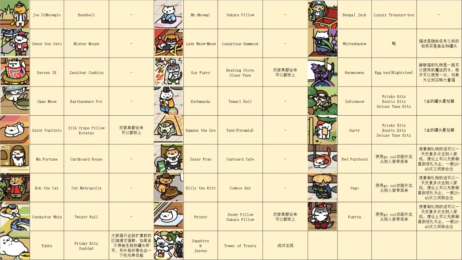 在《猫咪后院2》里,总共有26只特殊猫咪,每一只的出现条件我们都已经整理成表格呈现给大家啦。