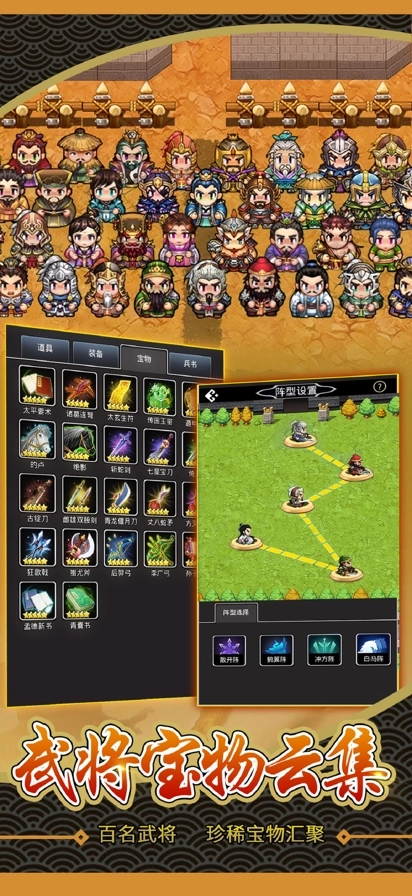 宝物云集,英雄悉数登场、招募诸葛亮、吕布、曹操等等,自由享受三国剧情。