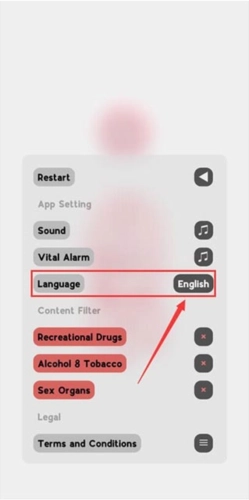 3、找到Language选项,接着点击其右侧的English来完成切换。