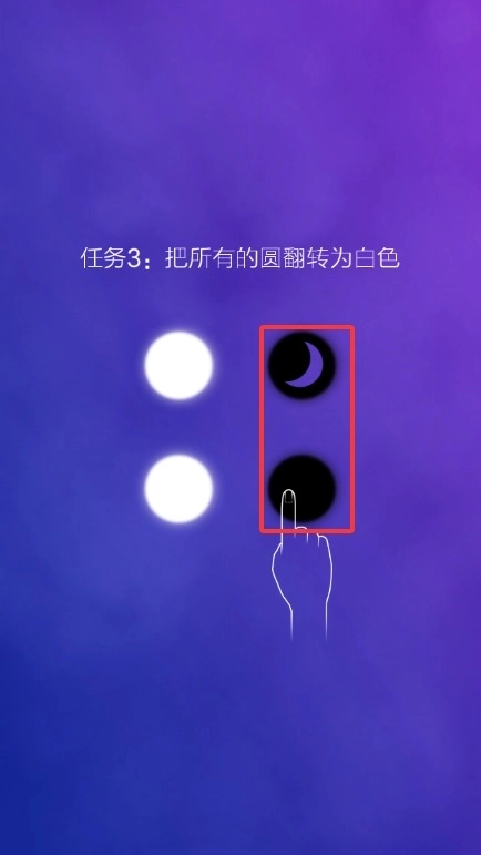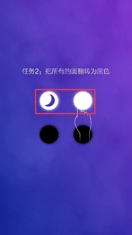 4、操控带有月牙标识的黑色圆球移动,借助碰撞把周围的黑球转化为白色。