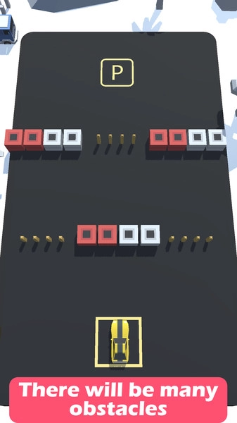 2、当停车场出现越来越多的障碍,老司机也要步步小心,动脑思考如何到达停车位。