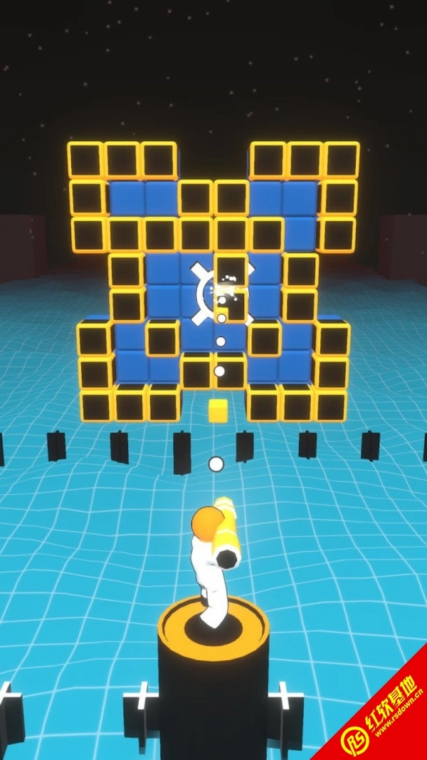 4.每个玩家都能操控一个小人投掷立方体,并且可以消除相同颜色立方体之间的碰撞。