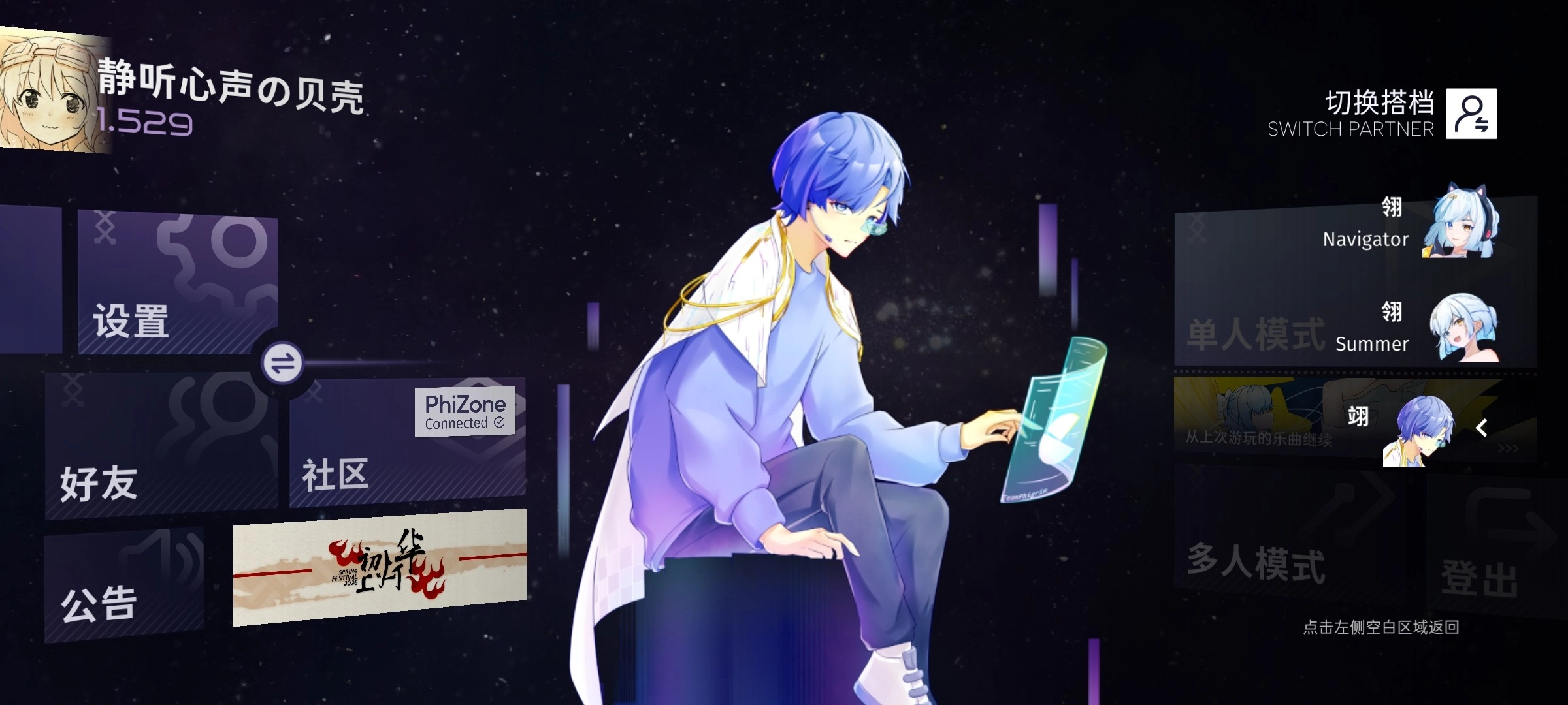 华灯初上是Phigrim官方开展的2.0.0大版本活动,通过查看剧情,游玩乐曲,成绩挑战来获取特殊奖励。
