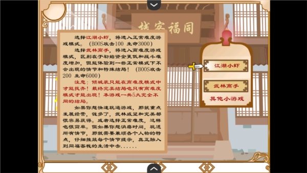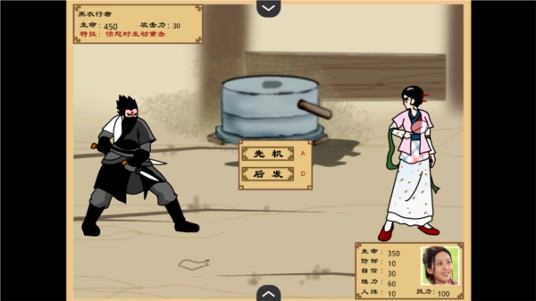 3、与敌人战斗需要选择先手或者后手攻击。一般来说后手效果卓著,但是需要消耗掌柜技能点。