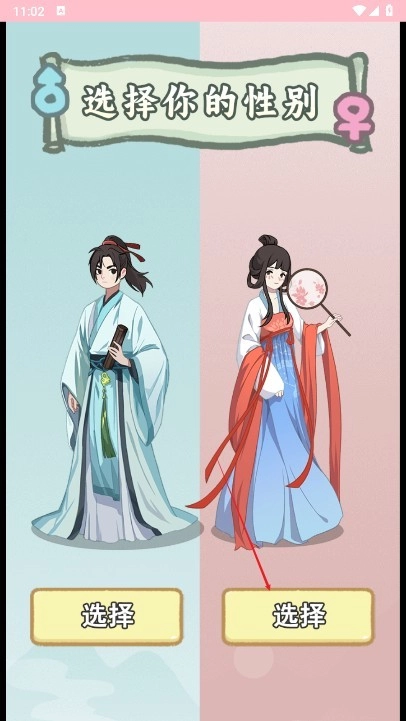 1、点击选择你的人物性别。