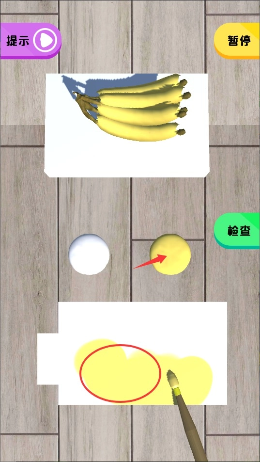 2、观察顶部提示的水果标准颜色,用手指滑动调色盘选取相近色块,点击对应区域进行填充上色。
