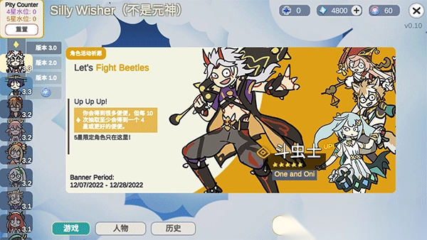 1、于游戏首页能够选择祈愿,以此抽取角色,支持单抽或者十连抽。