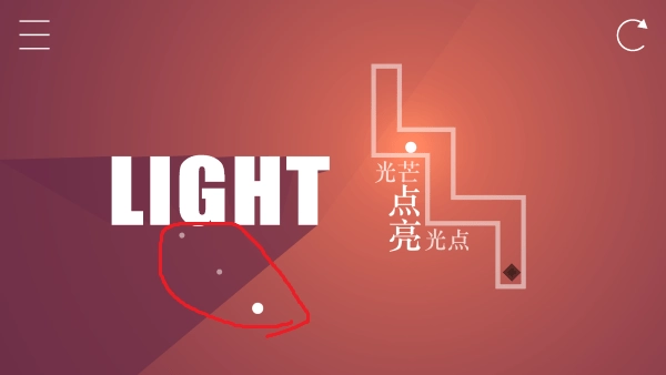 这一关卡意图相当明确,你的目标便是那些白色光点,巧妙借助角度,用它们驱散你所处的黑暗,实现点亮。