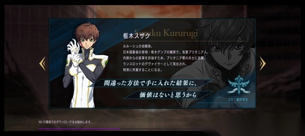 同时游戏内设计了海量原著动漫角色,包括鲁路修、枢木朱雀、C.C.、卡莲等,每个角色都有着不同的能力,玩家可根据关卡阵容进行搭配,以此不断获得战斗的胜利。