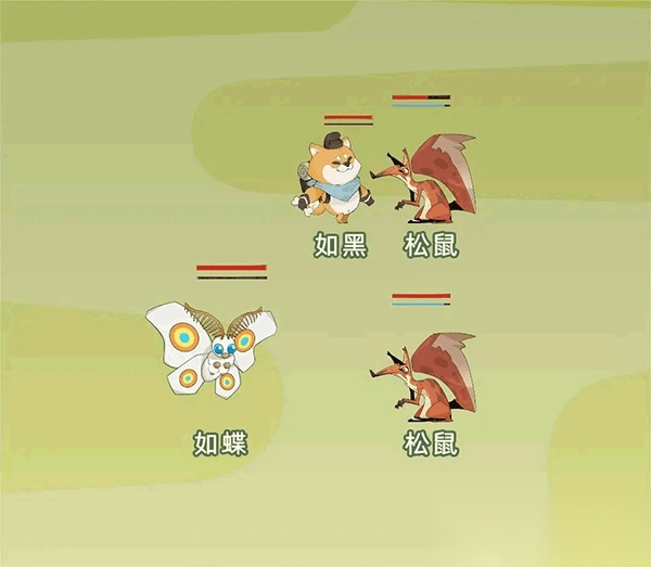 在战斗时,分为血条和行动条,当行动条满了之后即会攻击一次,血条没了之后就会倒地。让你的徒弟和你全部死亡之后,就会概率结束游戏。