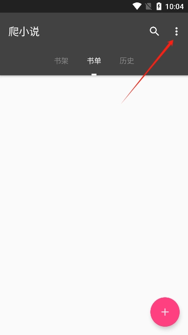1、首先,下载并启动爬小说软件,接着在右上角点击三个点的图标。