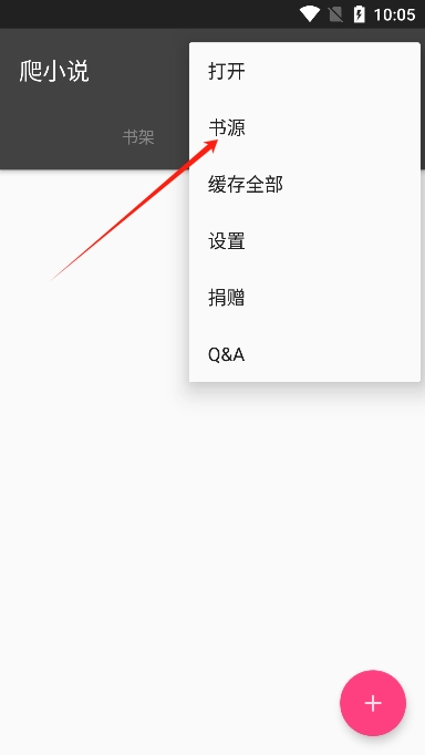2、随后,在弹出的选项中点击“书源”这一项。