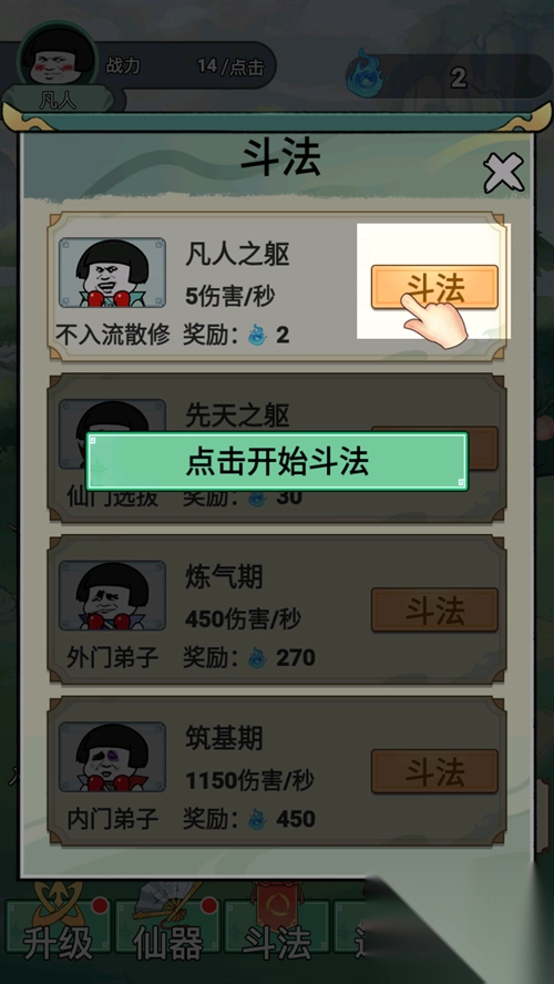 3、我们也可以通过斗法功能来和其他的敌人来进行对战。