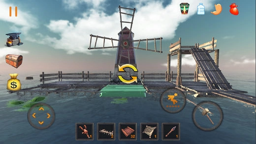 3、利用漂浮在残骸中的材料,建造并扩大你的筏子,就如同搭建一座漂浮的城堡。