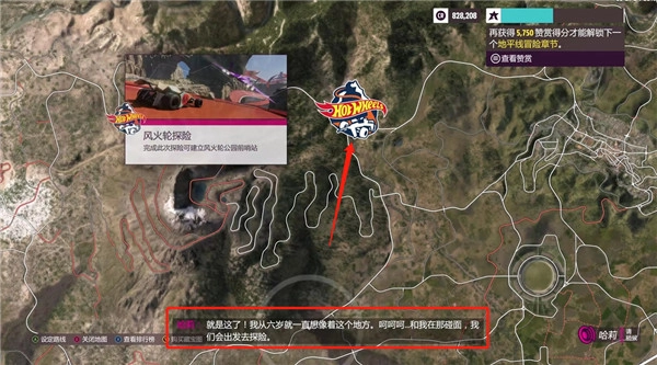 玩家需要先购买并安装风火轮DLC,完成后直接启动游戏。进入世界地图时,会自动触发剧情引导,此时在大火山的东北角会出现一个风火轮探险赛道标志,玩家可直接传送到该赛道位置。