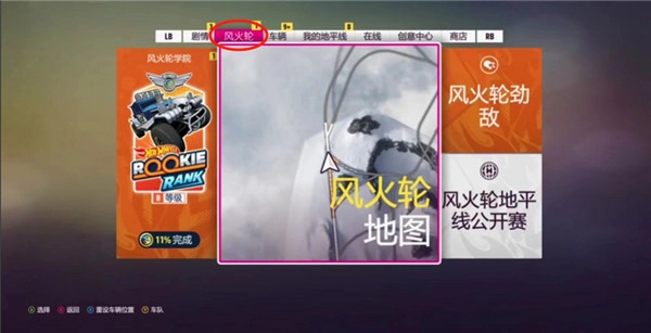 抵达赛道后,会触发开场引导剧情,这就如同一场表演秀。玩家需跟随剧情在风火轮赛道上跑一遍,之后便能正式解锁风火轮公园。在后续游玩过程中,还能直接通过菜单栏里的“风火轮”选项,快速进入该地图。