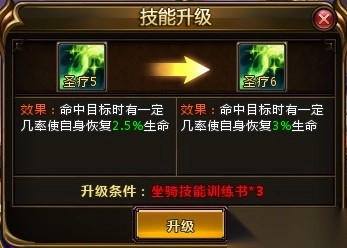 若要升级坐骑技能,需使用坐骑技能训练书这一道具。