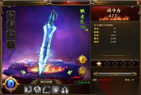 (3)神兵进阶成功后,将获得更炫更酷的外型和更加强大的属性;