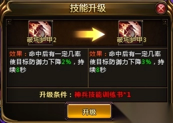 若要升级神兵技能,需使用神兵技能训练书这一道具。