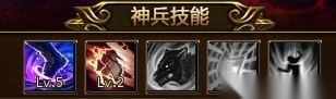 神兵一共具有5个技能,分别在神兵达到2阶、3阶、5阶、8阶、10阶时自动激活。