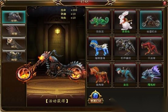 (3)坐骑进阶成功后,将获得更炫更酷的外型和更加强大的属性;