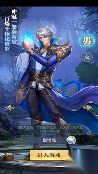 登录游戏以后需要创建角色,玩家只能选择自己的性别和姓名。点击左右符号或者男女性别就可以转换人物形象,萌新也可以选择自己输入名字或者使用系统选择,十分方便取名废的玩家!