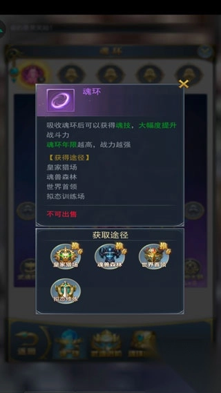 增强实力的另一个方法就是吸收魂环或者武魂进阶。魂环会随着玩家级别增加而解锁更多,在拥有魂环以后点击可吸收后选择魂环就行。