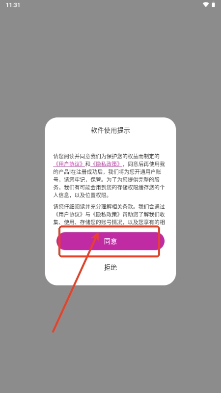 2. 进入软件后,点击以确认同意软件政策。