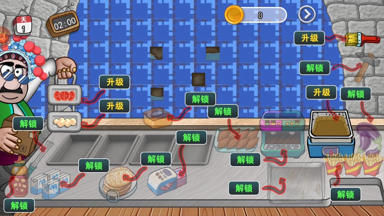 3、经营管理属于自己的摊子,解锁更多不同种类的原材料,尝试更多的美食。