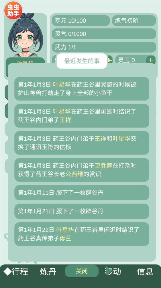 2、接下来便能够开启你的修炼旅程啦,点击中间的行程,就能查看今日发生的事情。