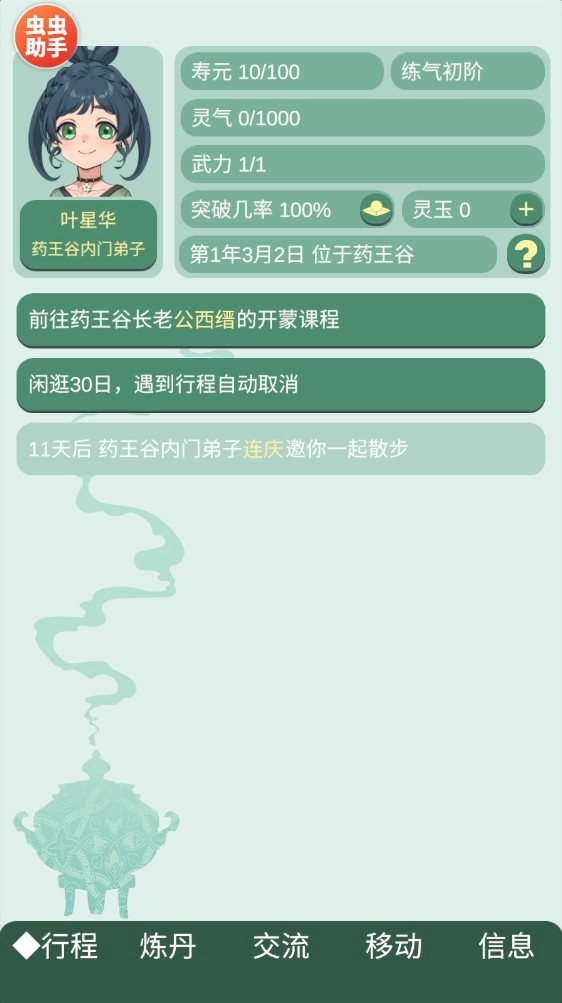 【步步生莲】增加游历速度这事儿,不妨先搁置一下。等到无需担忧寿命问题,且阳气达到20的时候,便有可能触发捡到灵宠,以及一见钟情等随机剧情。