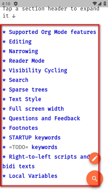 重要事项:保存时,Orgro将从内存中重新创建原始文件。这样做时,它会试图将更改限制在您已编辑的部分,但也可能会更改其他部分。特别是,非语义空白可能不会被保留。