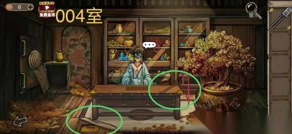 11、进入003室,点击留声机,然后通过点击唱片获得钟表的读数(大为9中为1小为5)。