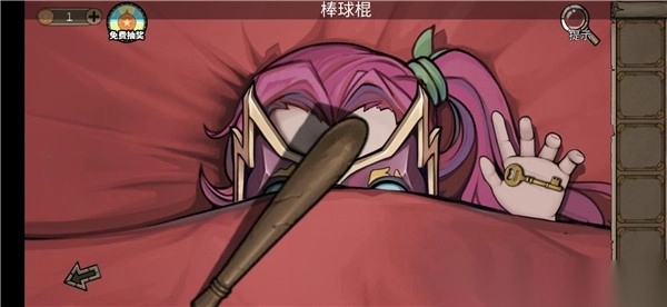 1、在衣柜左边拿棒球棍 把床上女生打晕 在她手里拿到钥匙。