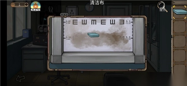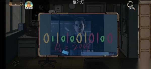 2、来到008号病房 在右边柜子里通过游戏拿到紫外线灯 用紫外线灯照射墙上的海报。