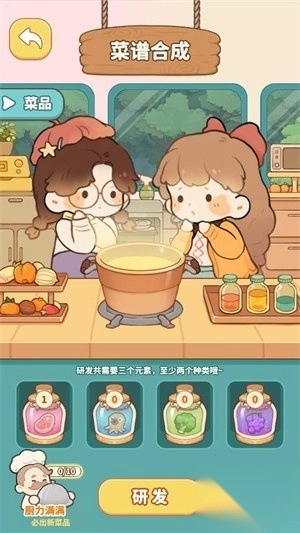 4、点击研发来消耗不同的元素研发全新的菜品。