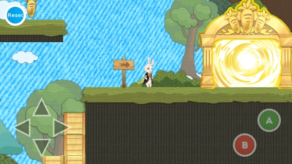 在这样的路段,你得点击A键进行跳跃,与此同时要吃到胡萝卜。另外,留意上方有一顶帽子。