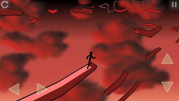 3、你要操作角色在高空中进行刺激的跑酷,时时刻刻感受命悬一线的紧张刺激快感,这部作品中的你将要和火柴人一起挑战和冒险,整个作品的玩法简单且容易上手,拥有相对应的按钮,玩家可以自由的完成挑战