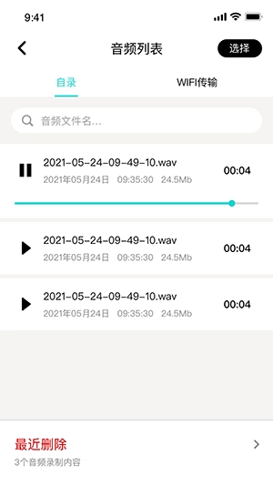 简洁清晰的录音列表以及丰富多样的共享选项