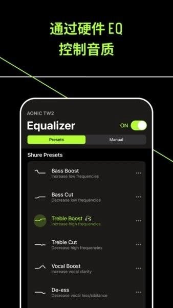 3、可在手机APP或耳机上对音效均衡进行调整。