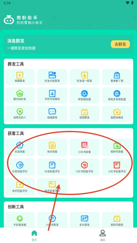 1、点击获客工具;