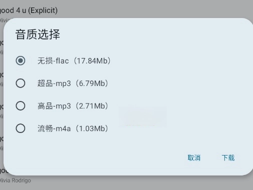 2、选择喜欢的音质(标准/高清)