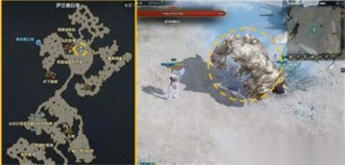 1、玩家需前往地图上村庄附近的一棵大树周围,朝着地图正上方行进,就能看到世界BOSS盐巨人。