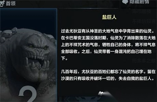 1、身份背景:盐巨人曾是尤狄亚从大地息孕育的仙灵,因吸收不祥咒术气息,化为失控的地下埋身怪物。
