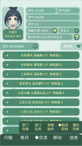 3、购买药材这里,可以购买你所需要的药材,去炼丹,提升自己。