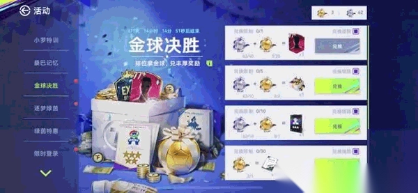 银球可以通过生涯赛获得,银球不限制获取数量,金球可以通过天梯比赛获得,金球每日上限15个。活动中40个银球+20个进球可以兑换77+的红卡球员