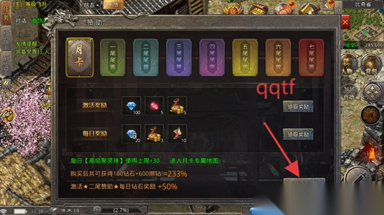 在赞助界面点击下方的购买功能。